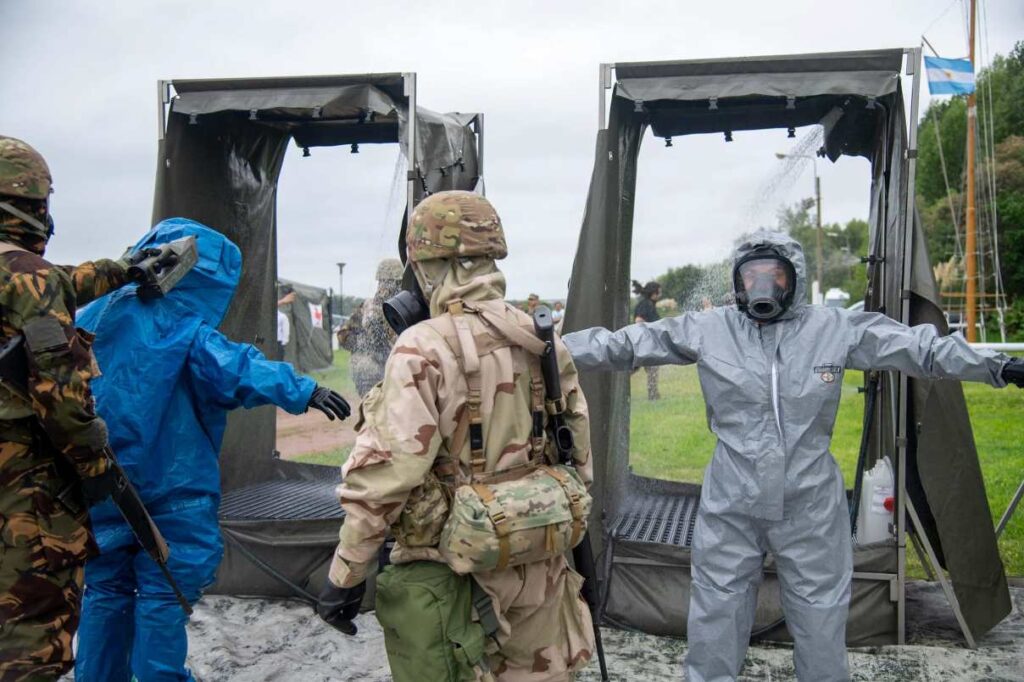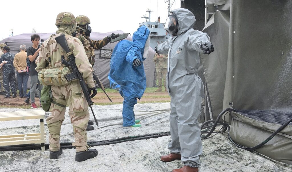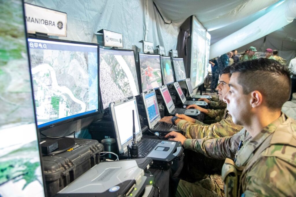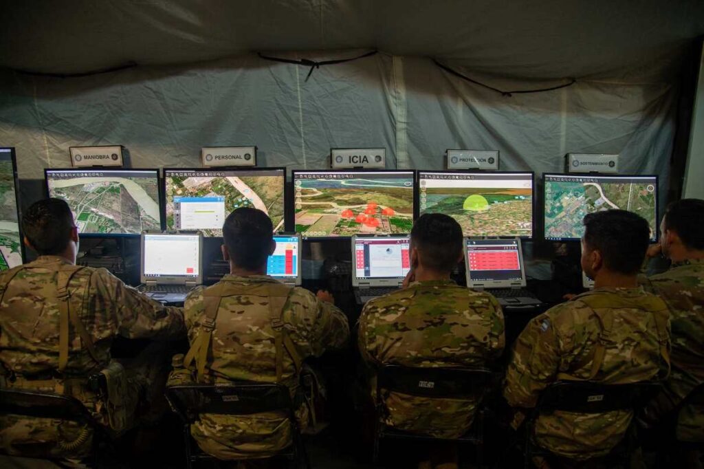 Desde defensa.com estuvimos en este ejercicio y pudimos apreciar que, en el puesto de comando táctico nos encontrábamos con las denominadas “celdas” de logística, comunicaciones, ciberdefensa, inteligencia táctica y personal entre otras. Desde allí se decidieron todas las acciones, incluido el uso del software táctico desarrollado por la misma fuera terrestre y drones. El general Sergio Jurczysyn, jefe de la Fuerza de Despliegue Rápido, instaló su puesto de mando multidominio en la Base Naval de Zarate, desde donde se organizó la recuperación de la central nuclear, un objetivo estratégico y crítico.