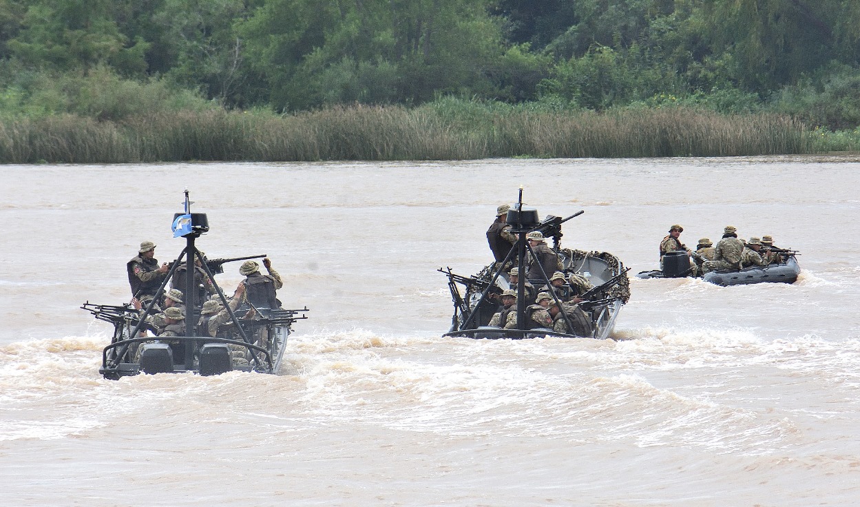 La Fuerza Naval participó con elementos de la Base Naval Zarate y la División Patrulleros Fluviales (ARA King, Ara Zarate y ARA Rio Santiago), así como tropas del Batallón de Infantería de Marina 3. Cabe mencionar que, a fines del pasado año, el ooder ejecutivo nacional firmó decretos que modifican en ciertos puntos el accionar de las instituciones armadas. En uno de ellos, concretamente el 1107, se indica que los objetivos estratégicos pueden ser custodiados por personal castrense, mientras que otro decreto, el 1112, menciona que el personal militar puede actuar en forma efectiva ante amenazas y agresiones de origen externo, que se desarrollen en espacios terrestres, marítimos, fluviales, aeroespacial del país. De tal modo, se programó un ejercicio que indicaba un ataque a una central nuclear, en este caso la de Atucha y, la respuesta organizada y centralizada de casi setecientos efectivos de unidades especiales del país.